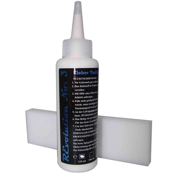 Revolution 3 ist ein Kleber der nächsten Generation. Vollkommen legal und trotzdem mit etwas "Frischklebeeffekt". Bei professioneller Anwendung werden die Beläge schneller und weicher. Bei nur einer Schicht verhält er sich wie ein normaler Festkleber, wer mehrere Schichten aufbringt erhält den gewünschten Frischklebeeffekt. Zudem lässt sich der Kleber hervorragend vom Belag wieder abziehen. Probieren Sie ihn aus.