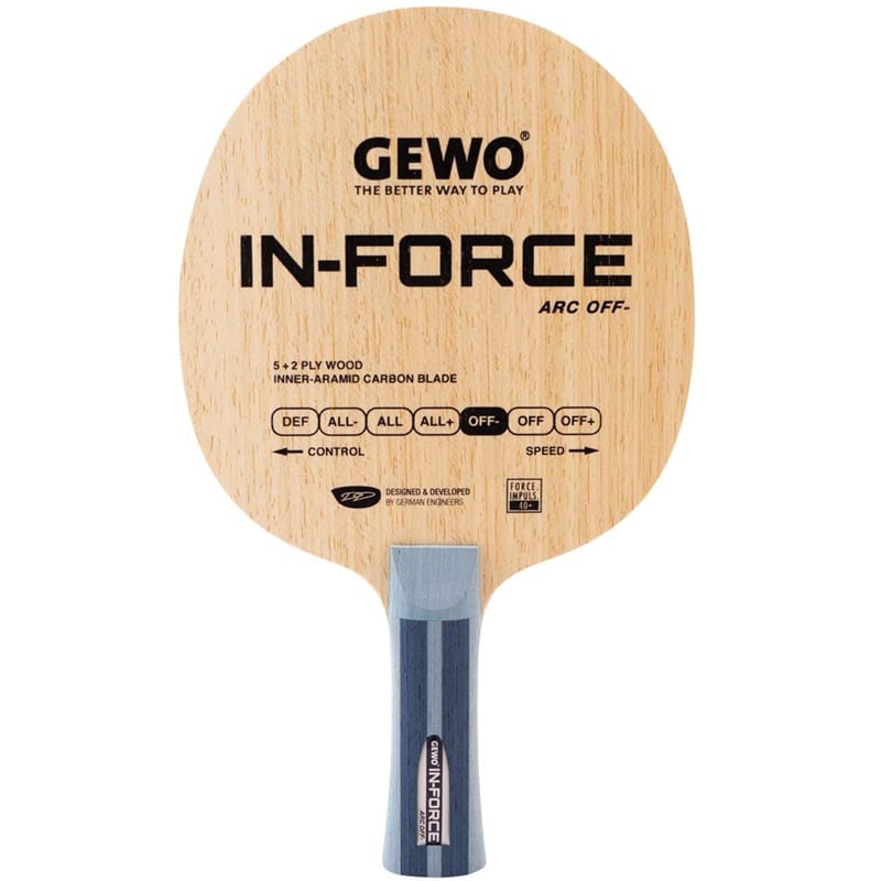 Das Gewo In-Force ARC Off- ist ein wahrer Alleskönner! Beim kleinen Bruder des Force ARC wurde die Kunstfaser direkt um das Kernfurnier gelegt und sorgt so für ein flexibleres und zahmeres Spielgefühl. Für Spin orientierte Angreifer, offensive Allrounder und selbst aktive Materialspieler eröffnen sich neue Möglichkeiten und Varianten für ihr Spiel und die harmonische Gesamtkonstruktion unterstützt sie dabei optimal.