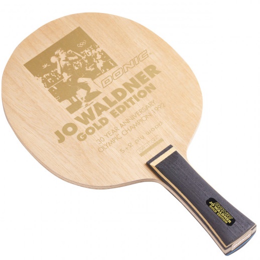 Das JO WALDNER GOLD EDITION, ein sieben-schichtiges Offensivholz (fünf edle Holzfurniere mit zwei inneren Schichten Etalyra-Carbon), ist einem der besten Tischtennisspieler aller Zeiten gewidmet. Entsprechend stylisch sind die Griffschalen dieses Holzes in den schwedischen Nationalfarben (VH gelb/RH blau) gehalten.